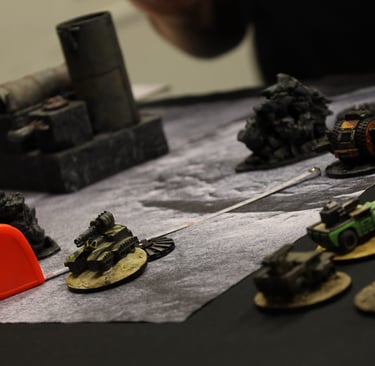 Charred Axle started out as a home-brew, vehicle only racing game using the rules from the Warhammer 30k world; but as I poured hours into the rules inspiration would keep showing up in the form of weapons, cool equipment and, most importantly - to me at least - story. So I threw away all the work I had done with the rules from the Warhammer game and jumped head first into making a brand new game.
