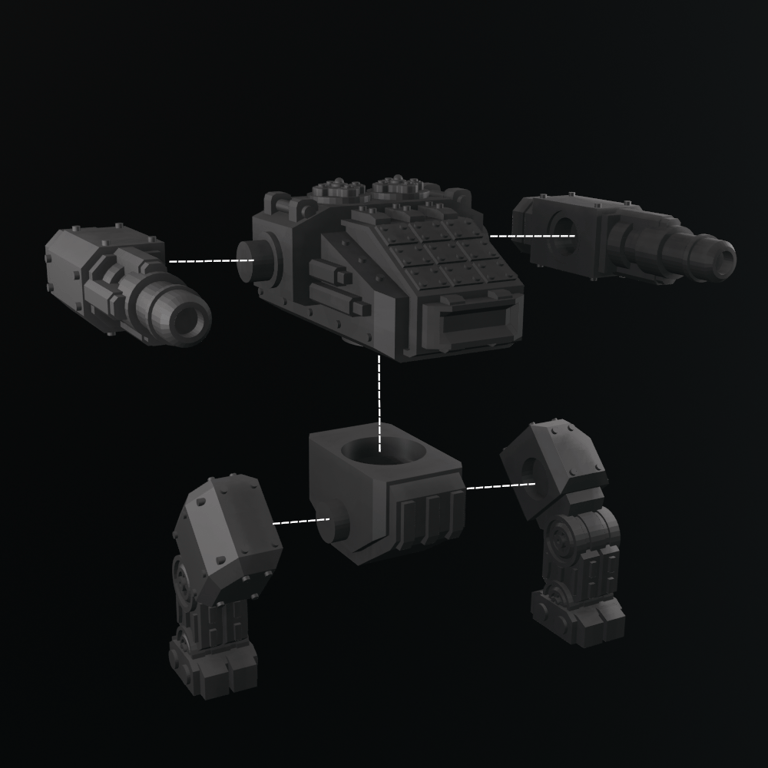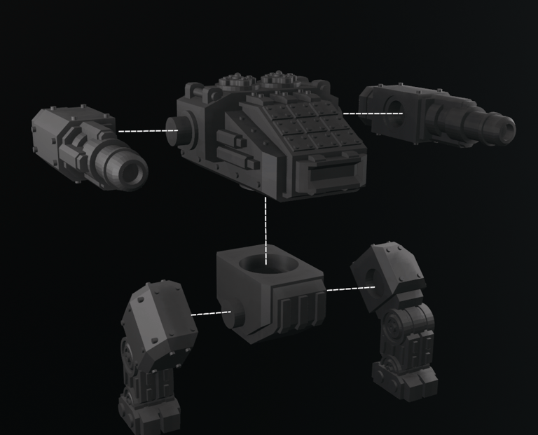 - Follow the images to assemble your Mechadon. The legs and weapons should be glued in place.