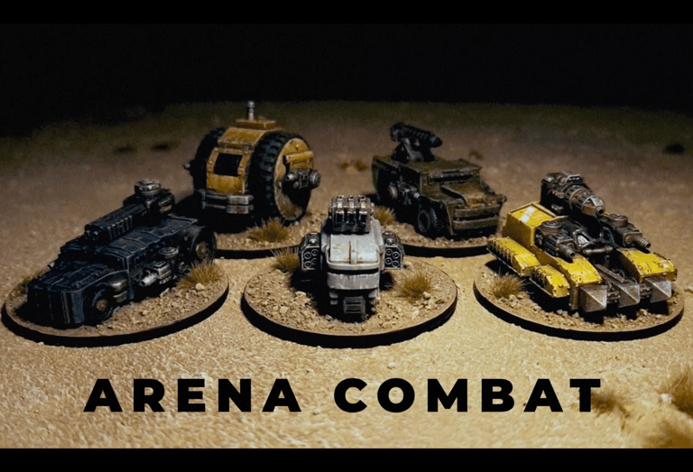 Charred Axle is played with 3D printed miniatures mounted on 50mm and 32mm circular bases. The models available at launch will be: An original roster of 5 vastly different Rig designs, over 20 different weapon designs, 2 styles of robotic pets called Familiars, 1 Mechadon - a large bipedal robot designed for the toughest of combats, a terrifying biological worm that lives in the deserts on planet Ainash called a Terror Worm, and all the tokens and counters you will need.